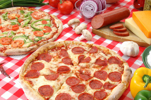 House Special Pizza Pepperoni sausage hamburger mushrooms green peppers and onions. 1575 Buffalo Chicken Pizza. Can of Soda.